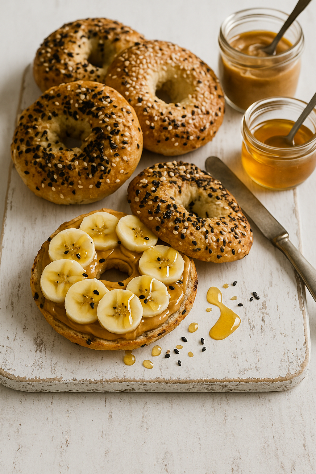 A high-protein bagel without any toppings — but just like your favourite bakery version, they’re delicious served sweet or savoury! These bagels are honestly the best invention ever… They’re wonderfully moist on the inside yet crispy on the outside, slice beautifully, and toast just like any other bread. The only “downside”? They’re a little smaller than traditional bagels — so you might find that one simply isn’t enough!